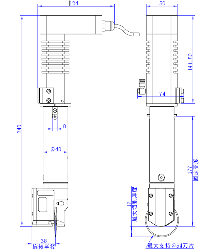 CLT91202柔性气动刀 安装尺寸