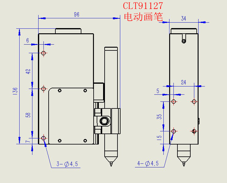 CLT91127 电动画笔 安装尺寸